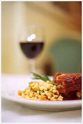 The menu is based around the loose idea of 'Celtic Food' with lots of game, fish and seafood as well as vegetables, which are combined to create 'wholesome rustic dishes'. On a typical day the kitchen will be working with such fine Scottish produce as; venison from Argyll or Perthshire, beef from the Buccleuch Estates, Stornoway Black Pudding, Ramsay's Carluke Pork ('the finest in the world'). The fish is supplied mainly from Troon Harbour by Macallum?s and frequently includes Smokies from Arbroath and fresh seafood. The emphasis on seasonal Scottish produce is continued with the vegetables. As Mo says:'This element of the meal is where it is most possible to reflect the change of the seasons'.