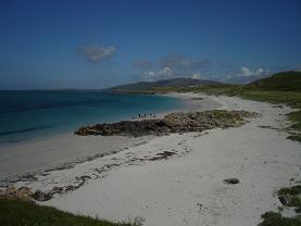The following day we travelled to Benbecula and climbed Rueval Hill, the highest point on the Island at five hundred feet. It is not very high but gives good views all round to the other islands and out to sea. We then had a tour of the island where the local population is increasing due to the availability of houses as the Army base is vacating the settlement. In the afternoon, we drove down to South Uist and over to the west coast at Askernish. It was another opportunity for a walk on a beautiful sandy beach. Although the beaches may look like a South Pacific island, it is too cold to go swimming in the sea although I did have a little paddle! The beauty of these islands is that they are fairly quiet despite their beauty.