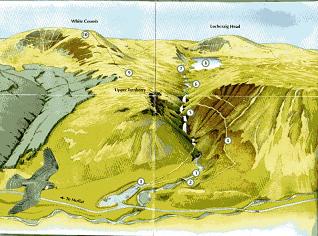 The Grey Mare’s Tail is actually a waterfall plunging 222 feet into a gorge and is the fifth highest cascade in Britain. It is easily reached from the car park on a good path. The name is thought to be descriptive but I think it is rather subjective. From the viewpoint there are steps on the steep path to Loch Skeen. We followed this path looking down into the gorge but branched off before the Loch as we were heading for the White Coomb which at 821 metres is the highest hill in Dumfriesshire. We followed a fence line to the top of White Coomb where there were panoramic views from the rounded summit.