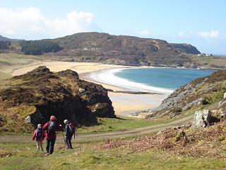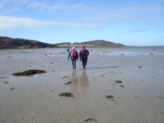 On the first day on Colonsay, we drove to the south of the island at Garvard to cross over the tombolo called the Strand where at low tide the islands are connected. This is a sandy strip and there is a limited time window to cross over to Oronsay and back before the tide comes in. However, there is one channel near Oronsay that never really dries up so wellies would be a good idea rather than wet feet! It is the Atlantic so the water very cold to walk across in bare feet although one of our group did manage it. On Oronsay we walked over to the Priory dating from the fourteenth century. We walked on to the beach at Dubh Eilean, a glorious sweep of white sand. We returned to the Strand just in time before the tide came in and walked back to Scalasaig.
