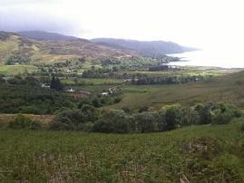 The following day we went on a very pleasant walk around the Glenelg peninsula and saw the little two car ferry still running to the south of Skye. The walk took in forest, beaches and moorland with excellent views around the area. The weather was certainly better at the low level. We even had a tea stop at a disused stable where John amused us by falling through an old garden chair that was there. As the oldest person in the group, we felt he should have the chair!