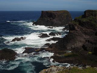 The Shetland Islands are the most northerly of the Scottish Islands and are north east of the mainland on the same latitude as Bergen in Norway. Being so far north there is very little darkness in mid summer. Conversely, there is very little daylight in mid winter! They have a winter festival called Up Hellya to brighten up the long dark nights but more of that later. I visited the Shetland Islands in mid summer so there was lots of daylight and even good weather. They are windswept islands and few trees grow on them but there are lovely gardens in sheltered spots. The islands have a wonderful history and outstanding landscapes with dramatic sea cliffs along with an unusual culture.