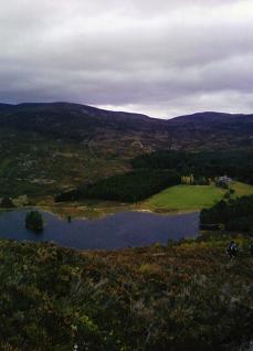 The next day we drove to Newtonmore, south of Aviemore, on the A9 where we left the cars at the Highland Folk Museum and walked to the next village of Kingussie. This walk was along the road so was not so interesting. From Kingussie we walked up the hill towards the Monaliadh Mountains and reached the top of Creag Bheag with lovely views over the loch to the gently rolling Monaliadh Mountains. Some people very disingenuous in referring to these mountains as upturned pudding bowls! We descended to the loch and followed a wooded path leading over moorland and back into Newtonmore.