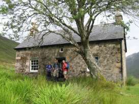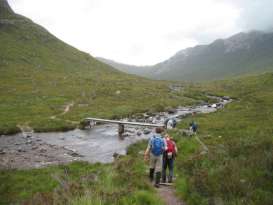 The walk is from Coulags, near Glencarron, and the hill cannot be seen as it is hidden behind Meall nan Ceapairean. The route follows alongside the river on a very good track. This is deer stalking country so there is a good network of paths used for stalking and these benefit walkers. Fortunately, there is a bridge over the river and the path continues to Coire Fionnaraich bothy. This is a fine bothy where I stopped for a cup of coffee on the return journey. We continued to the famous Clach nan Con-fionn stone where the Celtic folk hero Fionn McCuill allegedly tethered his hunting dogs.