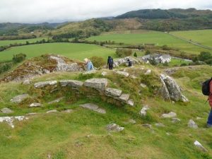 There were also the remains of a broch near the top. A broch is an Iron Age drystone hollow-walled structure. Lower down there is a footprint carved into the rock thought to be associated with coronation rituals. One of the group actually fitted in to the footprint! Certainly, a Cinderella moment.