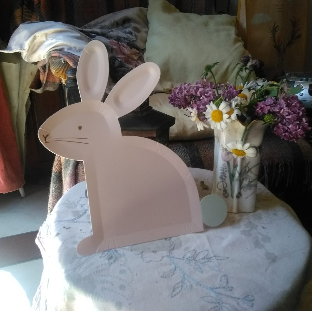 What will happen afterwards is another question. What has been heartwarming is the care given by neighbours all around us. It was already good but now we really check up on each other every day, always keeping a respectful 2 metre distance between us. A cheery wave, a bonjour and a smile does wonders. My lovely chatelaine – the lady from the chateau comes up the hill to walk her dog every day and she leaves delightful goodies on the doorstep. One evening it was freshly made crepes another it was homemade cherry cake with strawberries – she even made an Easter rabbit made out of a paper plate.