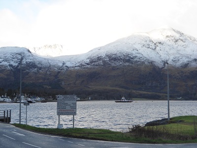 That evening we took the short ferry crossing of five minutes from Corran to Ardgour to dine out at the Inn. It is a cosy place and we enjoyed our traditional fish and chips. I left the following morning for the bus trip back to Glasgow. It was a clear day as we passed all my favourite mountains on the route, including Buachaille Etive Mor, wearing its snow cap, and on through Rannoch Moor, with a thin covering of snow. When we reached Loch Lomond there was no snow to be seen on Ben Lomond.