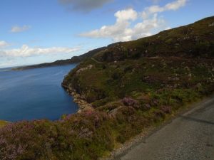 On our first afternoon we walked to Hallaig to see Sorley MacLean’s memorial. The walk had excellent views over to Applecross on the mainland. Hallaig is the most recognised poem of Sorley MacLean, an important Scottish poet of the 20th century. After writing the poem, MacLean rose to fame in the English-speaking world. It was originally written in Scottish Gaelic since the author was born on the island of Raasay, where Scottish Gaelic was the everyday language.