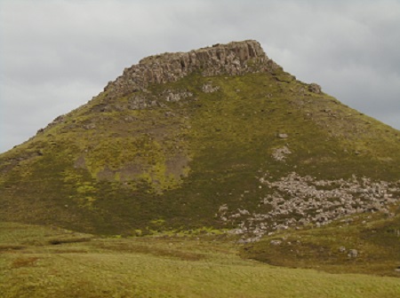 Dun Caan is the highest point on the Isle of Raasay, a very distinctive flat-topped summit, volcanic in origin. It is a superb viewpoint – so good that early visitor James Boswell danced a jig of delight on the top. We started the walk on a good path but eventually we saw the path had a steep descent on an eroded path before a walk to the final summit. There was some concern in our group about this path so we descended in to the glen. There is no mention of the difficult terrain on the walk descriptions available. The glen was very boggy as there had been recent heavy rain but we bravely walked on to find a better path!