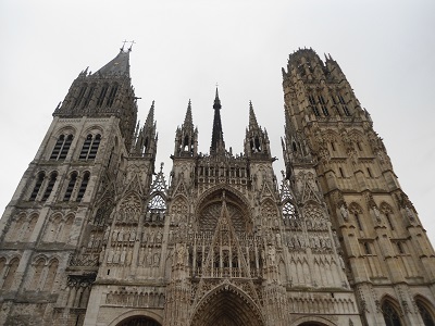 One of the main attractions is the Gothic Cathedral known as Notre Dame and built on the remains of a 4th century basilica. The present structure dates from the 12th century although the building has evolved over the years. It was badly bombed in World War Two due to proximity to the river and some of the Gothic Rose windows were lost. Its 19th century cast iron spire rises to a height of 151 metres (the highest in France). The cathedral is also the only one in France to possess an adjoining archiepiscopal palace still occupied by an archbishop today. The cathedral contains the tombs of the Dukes of Normandy, including that of Rollon, founder of the duchy in 911, and the heart of Richard the Lionheart, King of England and Duke of Normandy. The most famous paintings of the cathedral were done by the Impressionist artist Claude Monet, who produced a series of Impressionist paintings of the building showing the same scene at different times of the day and in different weather conditions. Unfortunately, I could not see the interior of the cathedral as it is closed on Mondays.
