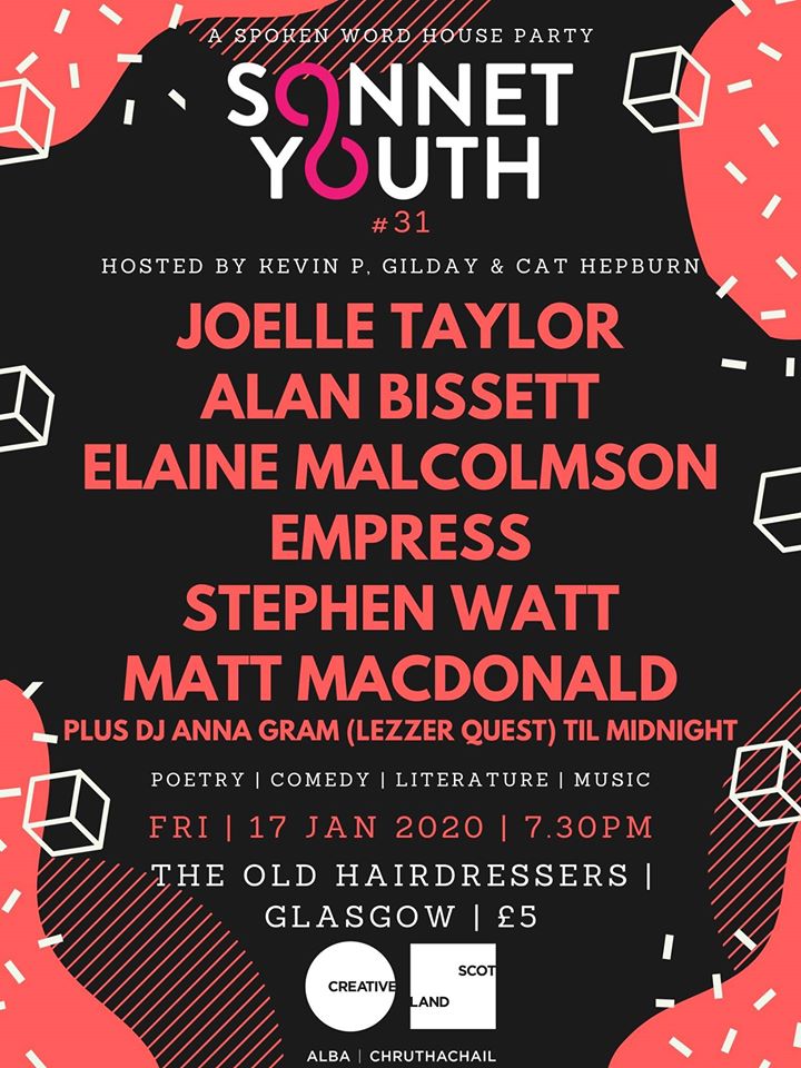 Curated and hosted by Kevin P. Gilday – Writer & Spoken Word Artist and Cat Hepburn Write, – proud to present a night of non-stop entertainment from some of the most unique artists plying their trade in Scotland, and beyond.