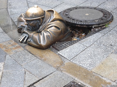 The street sculptures in Bratislava were also very amusing –the one I particularly liked was of a man emerging from a man hole in the pavement!