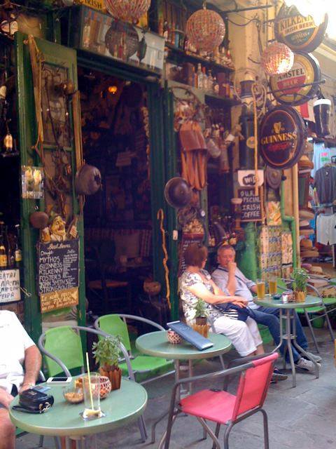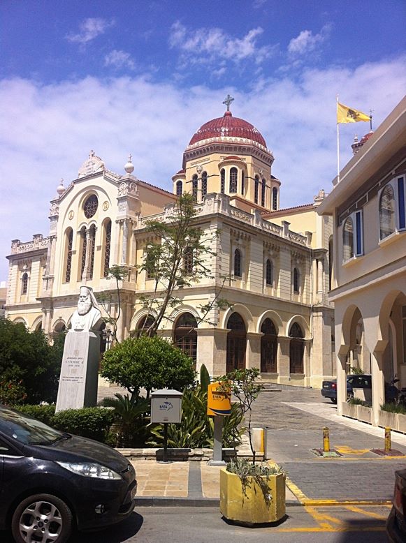 Some days we took advantage of the great local bus service. and ventured further afield: we caught the luxury coach to the capital, Heraklion, where we enjoyed the Saturday bustle on 25 August Street, the vibrant street life around the market, stumbling upon ancient ruins and exploring the wonderful St Minas Cathedral. Another day we went to Agia Nikilaus, which is in a fabulous location on the Gulf of Mirabella. We enjoyed sitting by the lake and found our way to the most beautiful wee beach – right in the centre of town. We also visited Rethymnon – the old town is a great place to wander – lots of fascinating wee lanes, lovely cafes and shops and interesting buildings reminiscent of Venetian days.