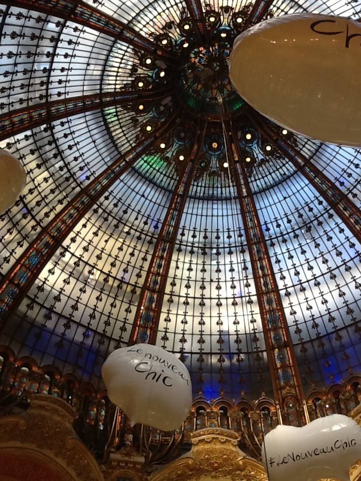 Jim and I aren’t really big foodies but as we were in the area we headed for Cafe Angélina in Galleries Lafayette, Boulevard Hausmann. It’s a classy place and we enjoyed both the surroundings and some very decadent chocolate cake. We were equally delighted by the amazing ceiling in this department store.